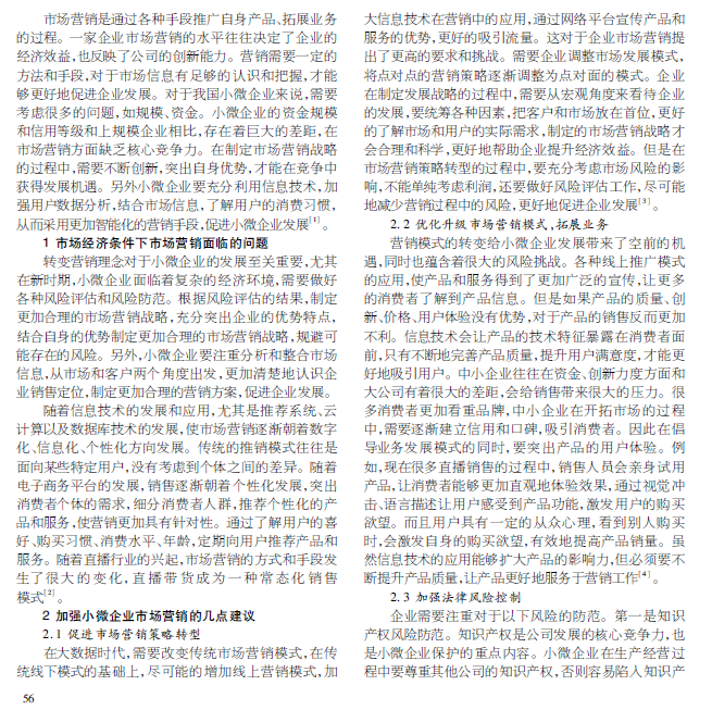 中国小微企业市场营销管理的现状 及应对措施分析