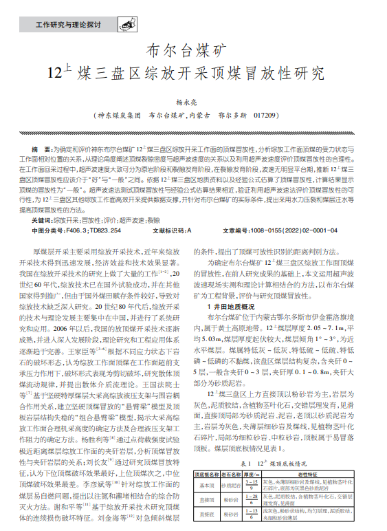 布尔台煤矿12上煤三盘区综放开采顶煤冒放性研究