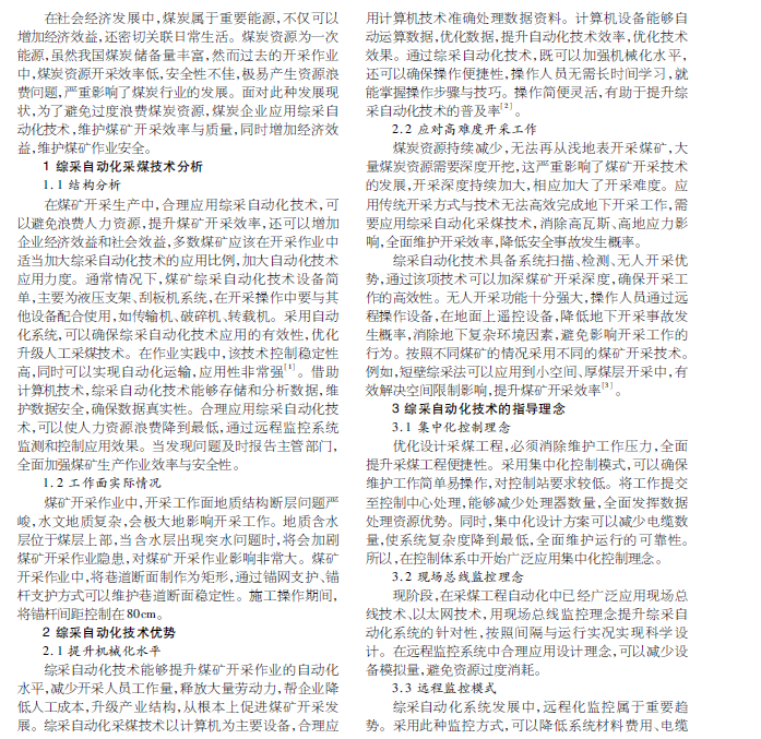 在采煤工程建设中合理应用自动化技术工艺,在智能技术支持下应用效果显著。