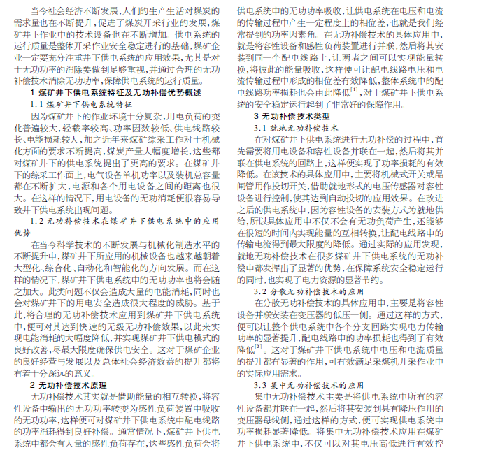 煤矿矿井供电系统无功补偿技术的应用策略