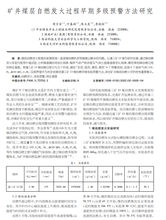 自燃发火;多级预警;特征温度