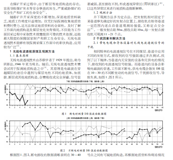 无线电波透视技术作为探测煤层回采工作面内地质构造的一种成熟方法。