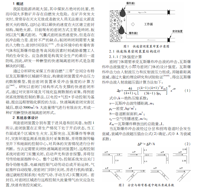 针对煤矿井下发生灾害时需要快速隔离密闭灾害区域的需求,设计了一种全新的快速隔离密闭形式。