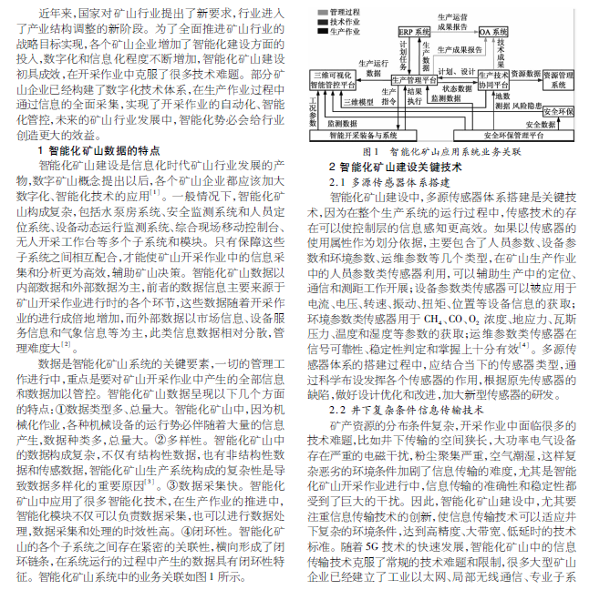大数据时代到来以后,智能化技术已被应用到了很多行业。矿山行业在我国历史悠久,近年来更是迎来了新机遇,尤其是绿色矿山建设加快了智能化建设,智能矿山建设取得了一定的成效。