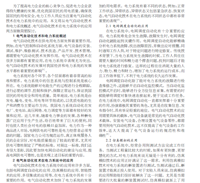 电气自动化技术 电力系统 应用