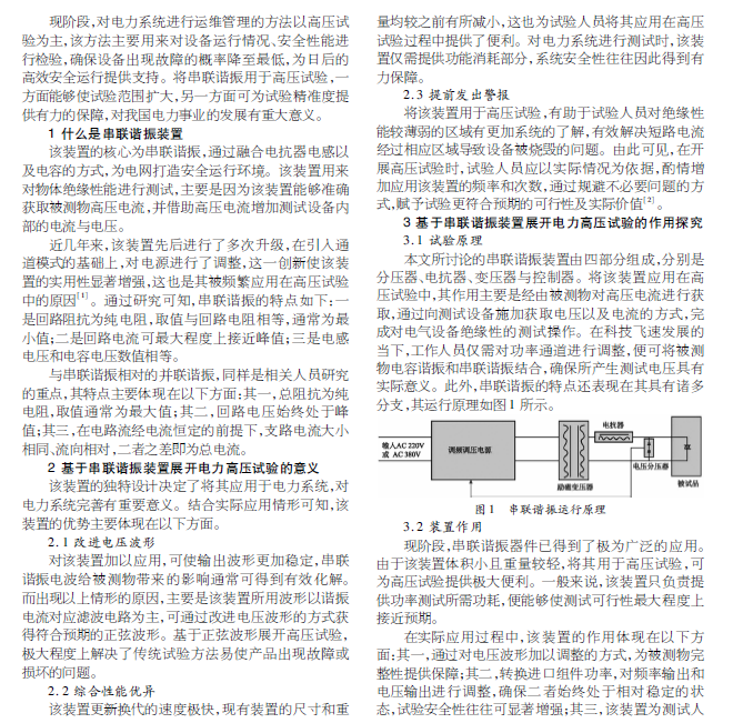 基于串联谐振装置开展高压试验,可使试验结果更加准确可靠,对电气设备长期处于正常运行状态有重大意义。