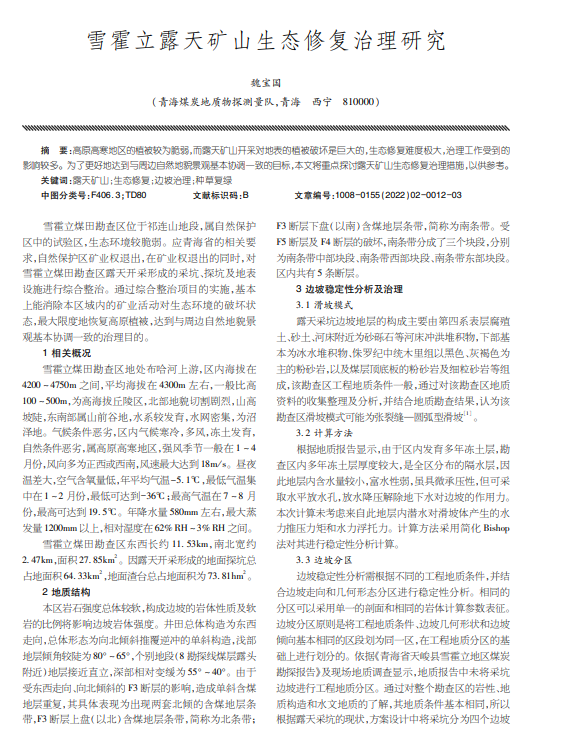 雪霍立露天矿山生态修复治理研究