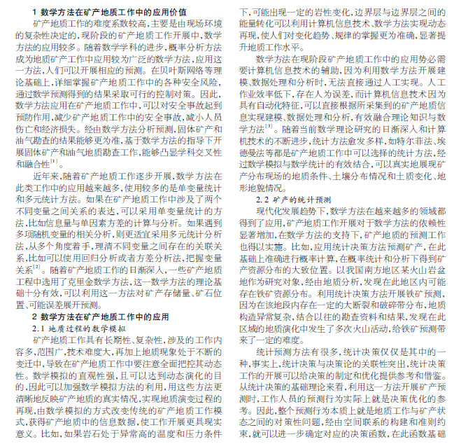 以矿产地质工作作为研究对象,分析在各种类型的矿产地质工作中的数学方法应用,希望对同类型的地质矿产工作提供一定的指导和借鉴。