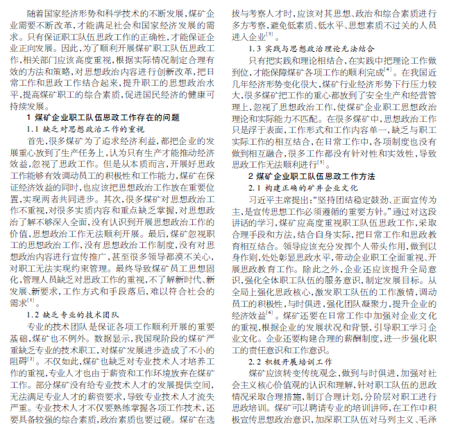 新常态下 做好煤矿企业职工队伍思政工作的方法