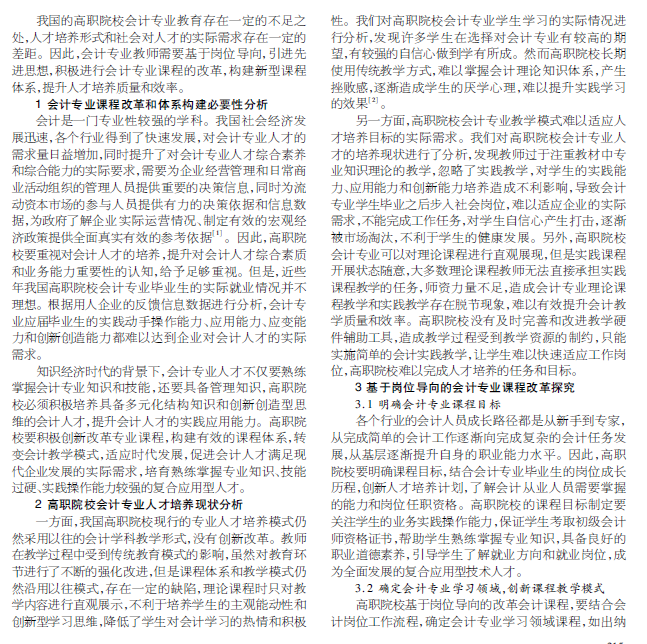 基于岗位导向的会计专业课程改革 与课程体系的构建探究