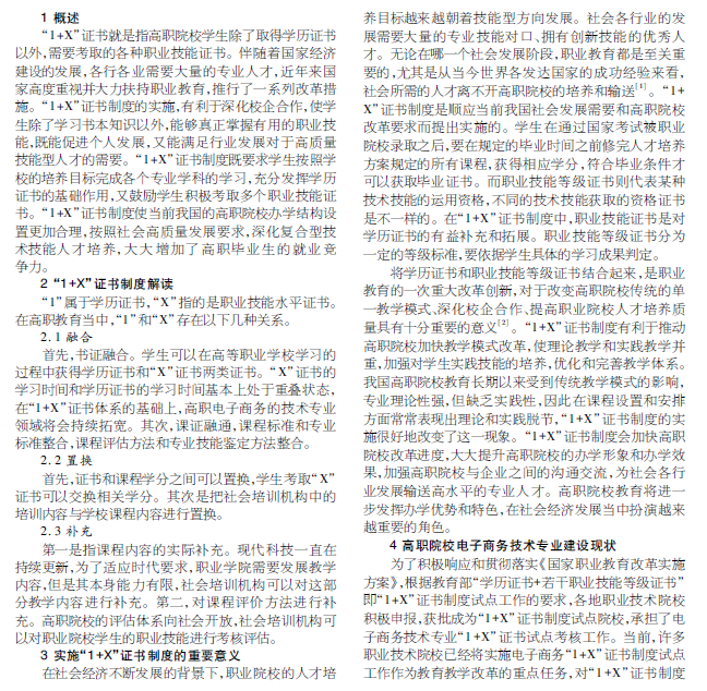 基于“1+X”证书制度的 高职电子商务技术专业建设探索