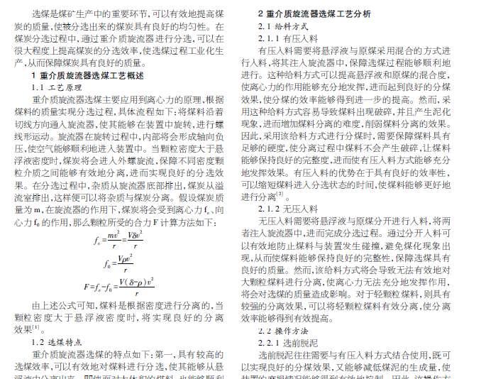 重介质旋流器选煤工艺研究