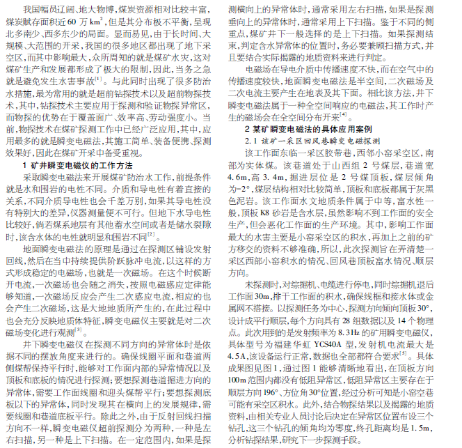 瞬变电磁法在煤矿防治水工作中的应用研究