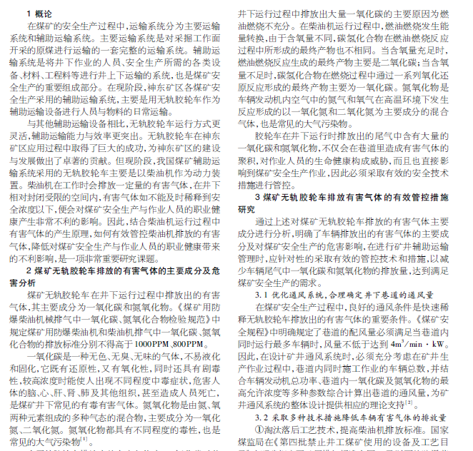 煤矿无轨胶轮车排放有害气体的管控措施研究