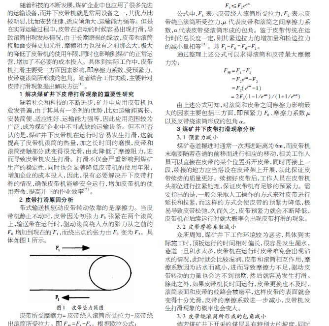 井下皮带打滑现象研究及解决方法