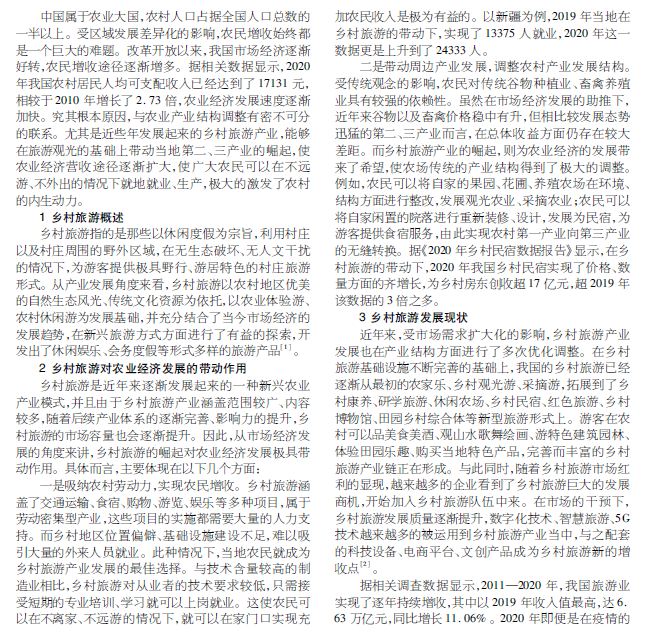 最后,结合相关数据分析了目前我国乡村旅游产业发展总体情况,并对乡村旅游发展完善对策进行了详细的介绍。