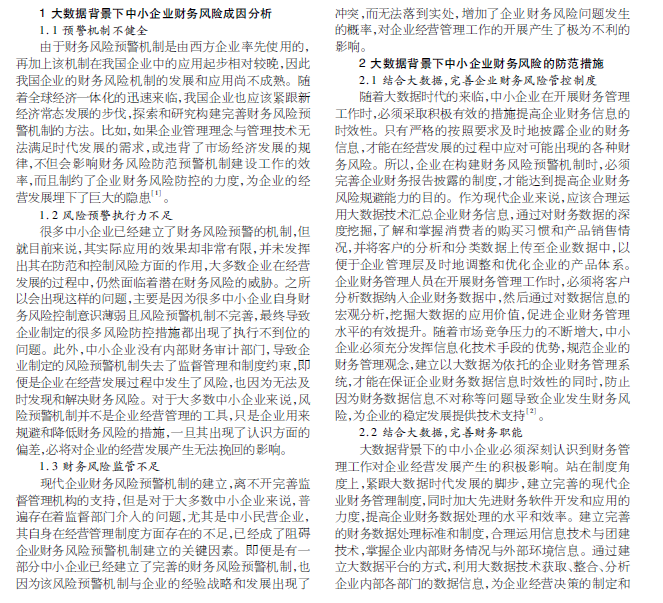 大数据背景下 中小企业财务风险的成因与防范探究