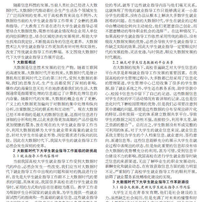 大数据时代 大学生就业指导 工作革新