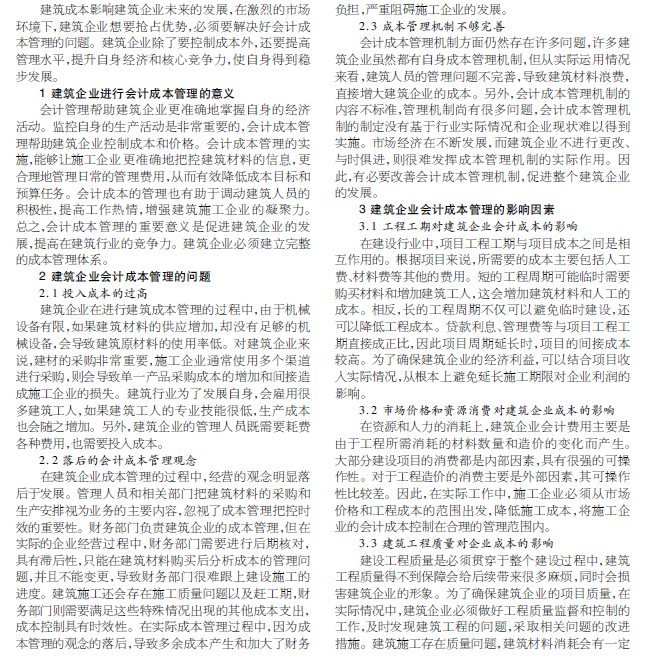 建筑企业会计成本管理问题与对策
