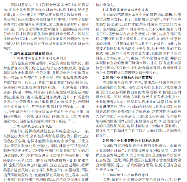国有企业 财务管理 业财融合