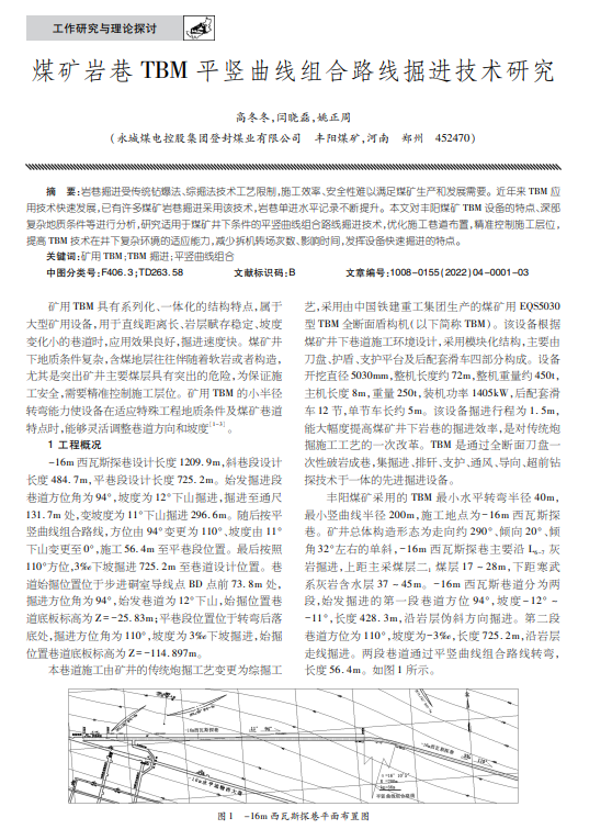 岩巷掘进受传统钻爆法、综掘法技术工艺限制,施工效率、安全性难以满足煤矿生产和发展需要.近年来TBM应用技术快速发展,已有许多煤矿岩巷掘进采用该技术,岩巷单进水平记录不断提升.本文对丰阳煤矿TBM设备的特点、深部复杂地质条件等进行分析,研究适用于煤矿井下条件的平竖曲线组合路线掘进技术,优化施工巷道布置,精准控制施工层位,提高TBM技术在井下复杂环境的适应能力,减少拆机转场次数、影响时间,发挥设备快速掘进的特点.