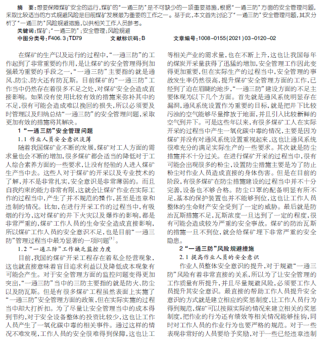 煤矿“”一通三防”安全管理及安全风险规避策略