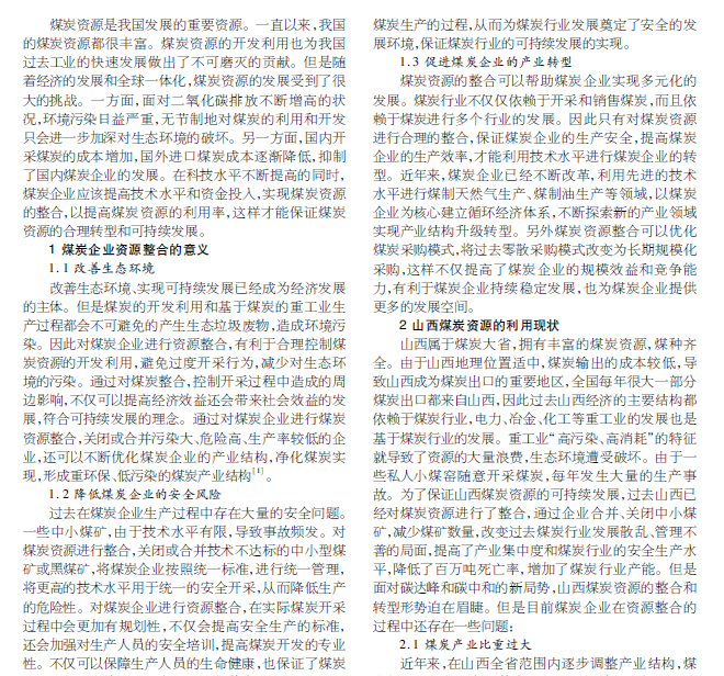 绿色经济发展理念下山西煤炭企业资源整合研究
