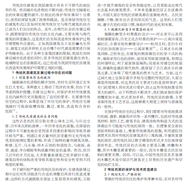 传统民居建筑技术改造和发展保护问题的研究