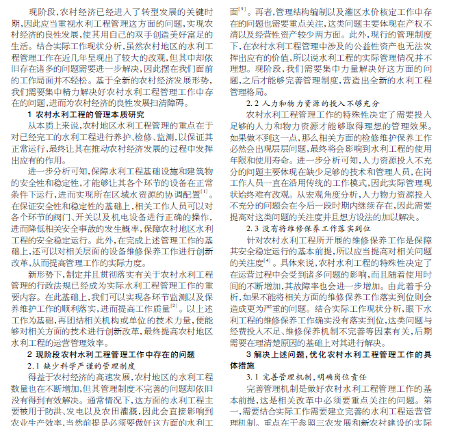 农村水利工程管理中存在的问题与改进措施