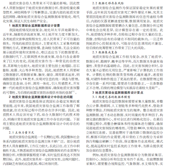 基于此,本文将主要论述地质灾害综合监测数据库设计探析。