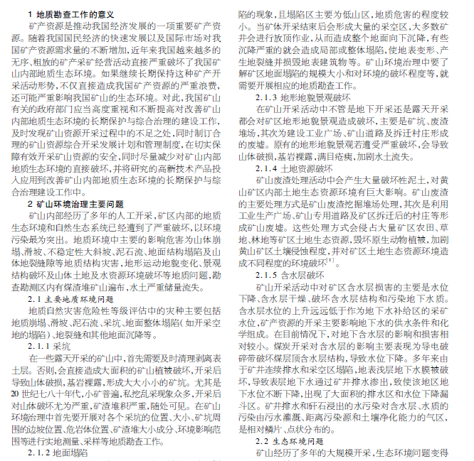 本次地质勘查基本上查明了该地区的主要矿山山体地质地理环境气象现状以及目前存在的问题。