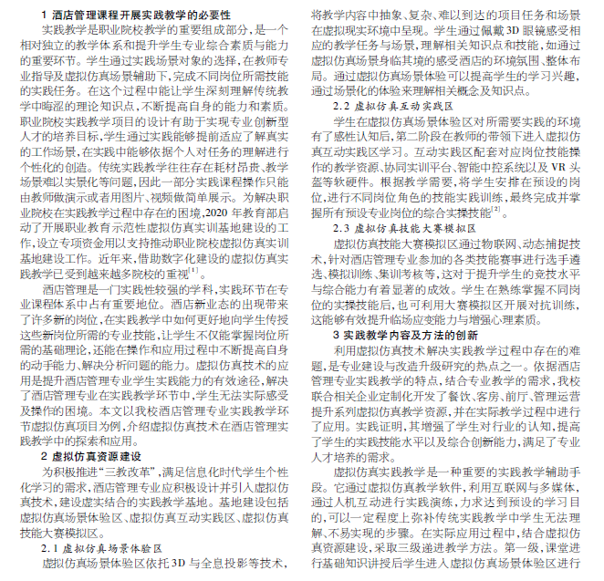 酒店管理 实践教学 虚拟仿真技术