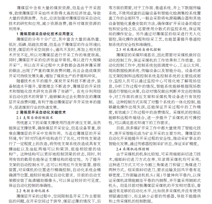本文分析了开发薄煤层综采自动化的意义,分析了目前薄煤层综采的关键技术,最后结合实例讨论自动化技术的应用方法。
