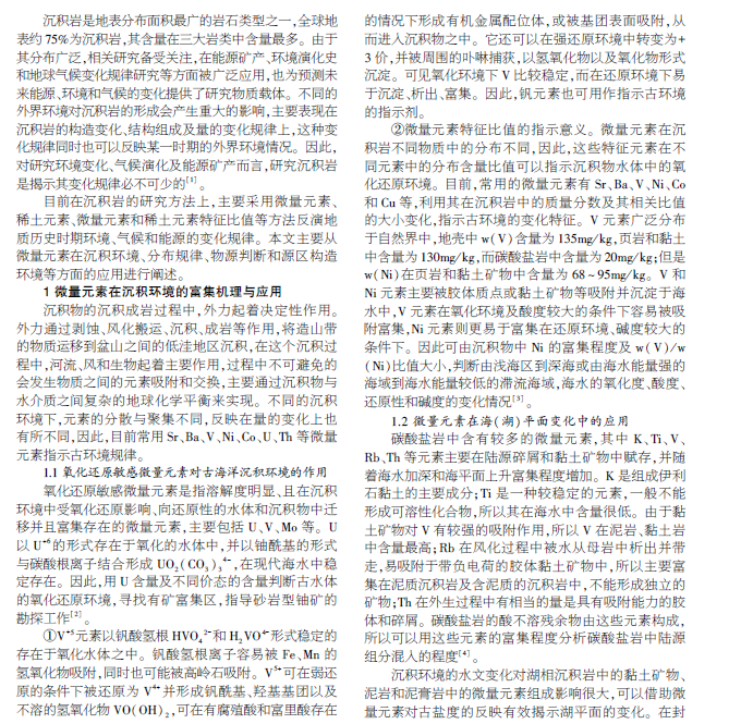 微量元素在沉积岩研究中的应用及综述