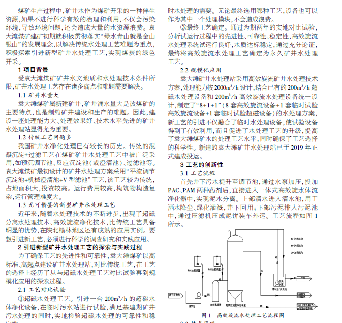 袁大滩煤矿矿井水处理工艺的探索与实践