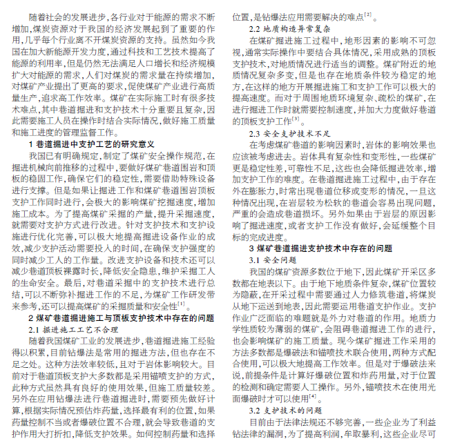 在煤矿开采过程中,巷道的掘进和顶板支护是最为重要的工作,几乎是整个煤矿开采的中心环节。