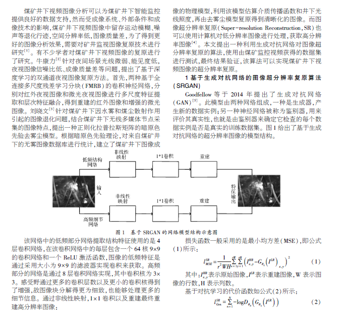 煤矿井下视频图像 超分辨率图像复原 生成对抗网络