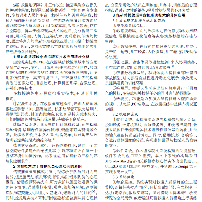 虚拟现实技术在煤矿救援领域的应用现状研究