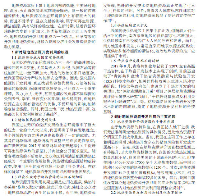 新时期我国地热资源开发利用机遇和问题分析