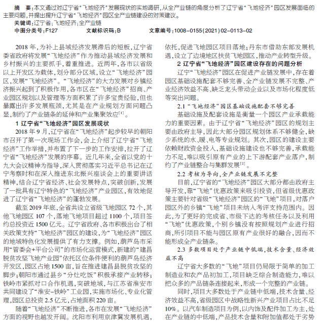 关于辽宁省“ 飞地经济” 园区 全产业链建设的建议