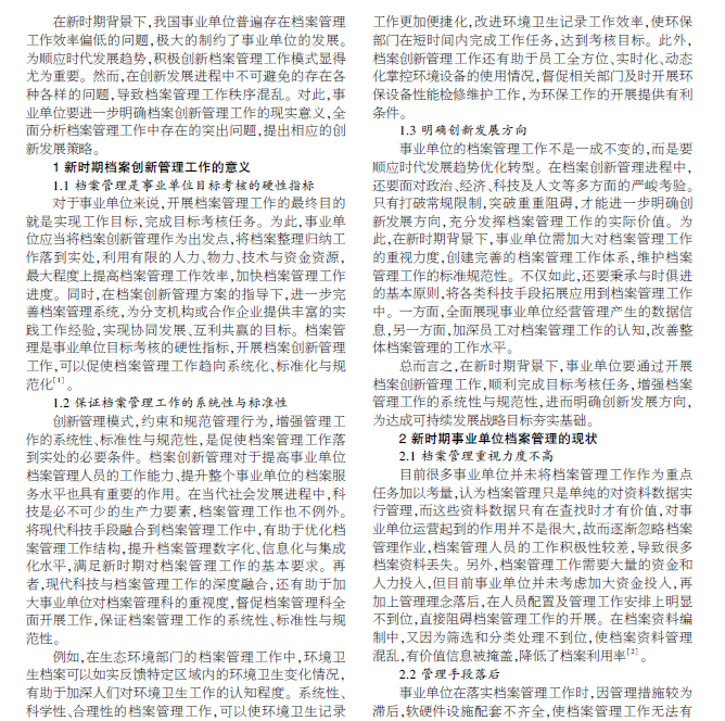 事业单位 档案管理 创新思路