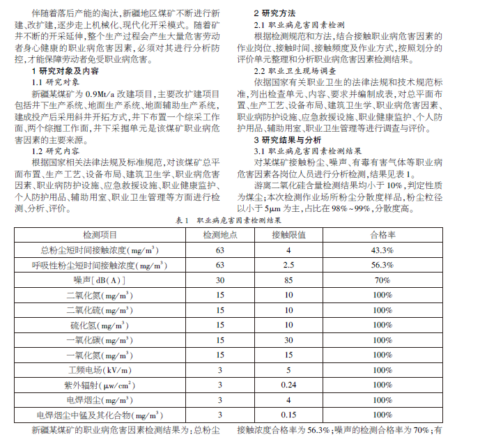 新疆某煤矿 职业病危害因素防治现状及对策研究