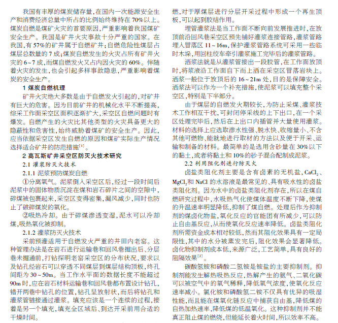 火灾是矿井生产中的常见灾害之一,对井下生产安全有着严重影响。
