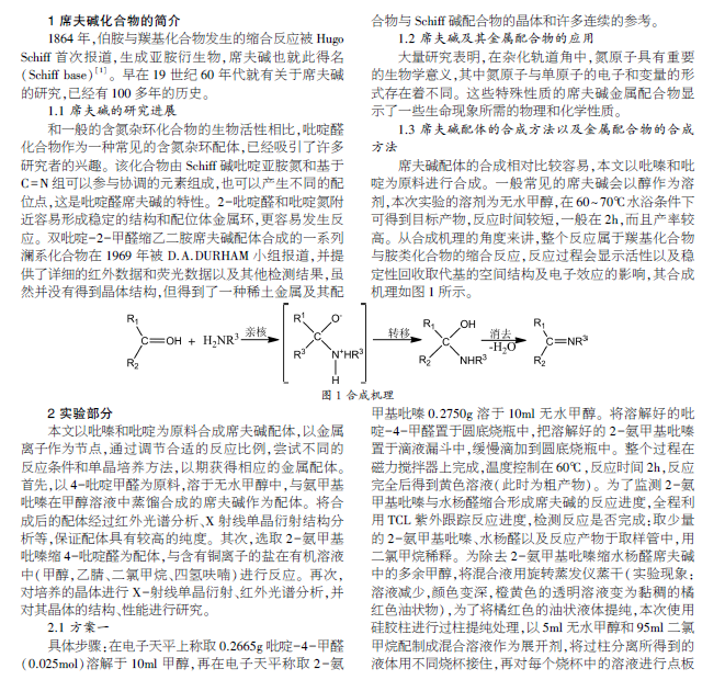 席夫碱化合物在生物化学、配位化学、超分子化学、催化、电化学等方面表现出许多新颖的性能,一直受到化学工作者的重视。
