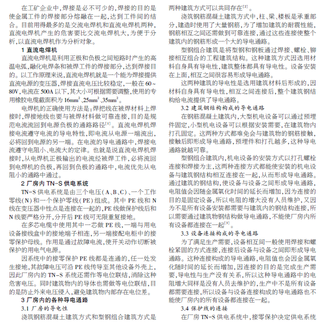 在380V/220VTN-S 供电的厂房内进行电焊作业时,焊接地线搭接在设备或建筑物钢结构的外露导体上。