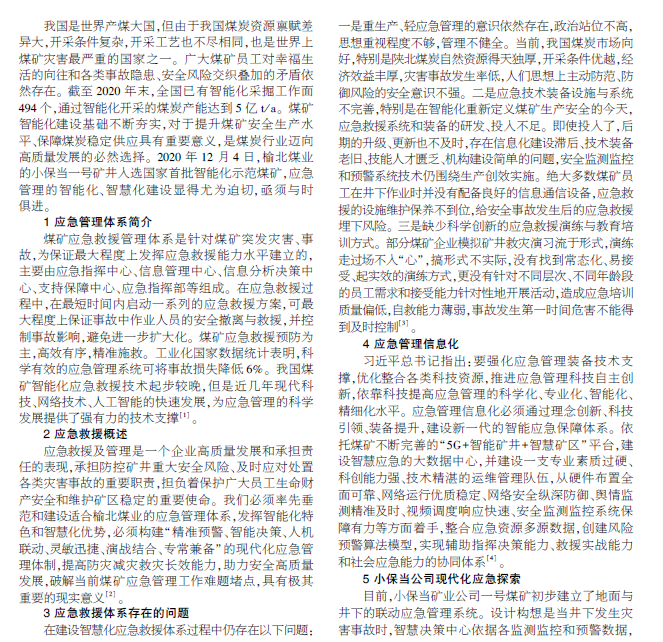 随着大数据、物联网、5G 等技术融入煤矿安全生产管理的各个环节,通过智能化建设提升煤矿安全生产水平。