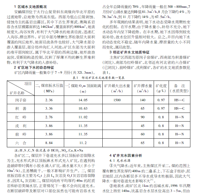 主焦矿区 水文地质 矿井水害