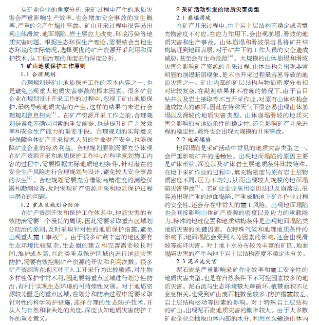 在我国矿产资源开发行业,采矿行为引发的地质灾害类型较为复杂,很多施工企业不注重安全生产和可持续生产原则。