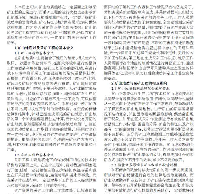 研究矿山地质是采矿工程正常进行的基础和前提,一定要在采矿之前做好相应的矿山地质探测作业。