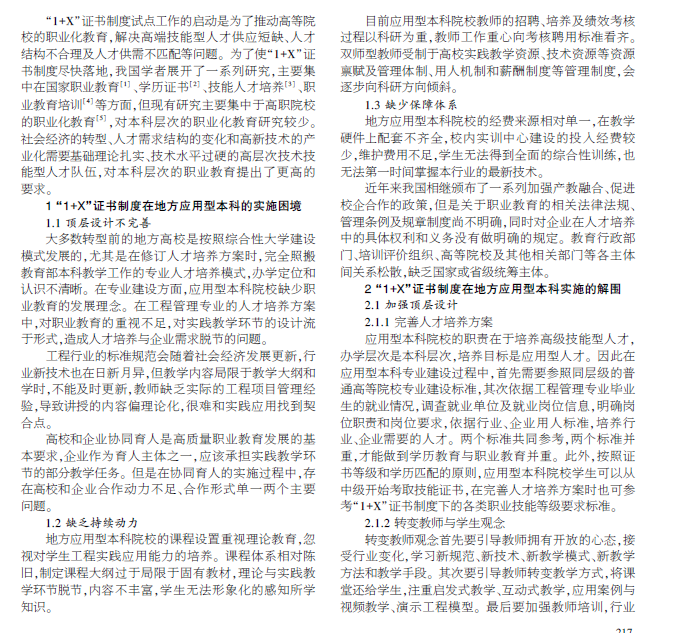 地方应用型本科院校“1+X”证书制度实施研究 ———以工程管理专业为例